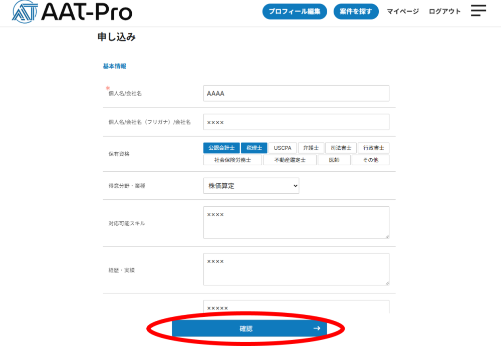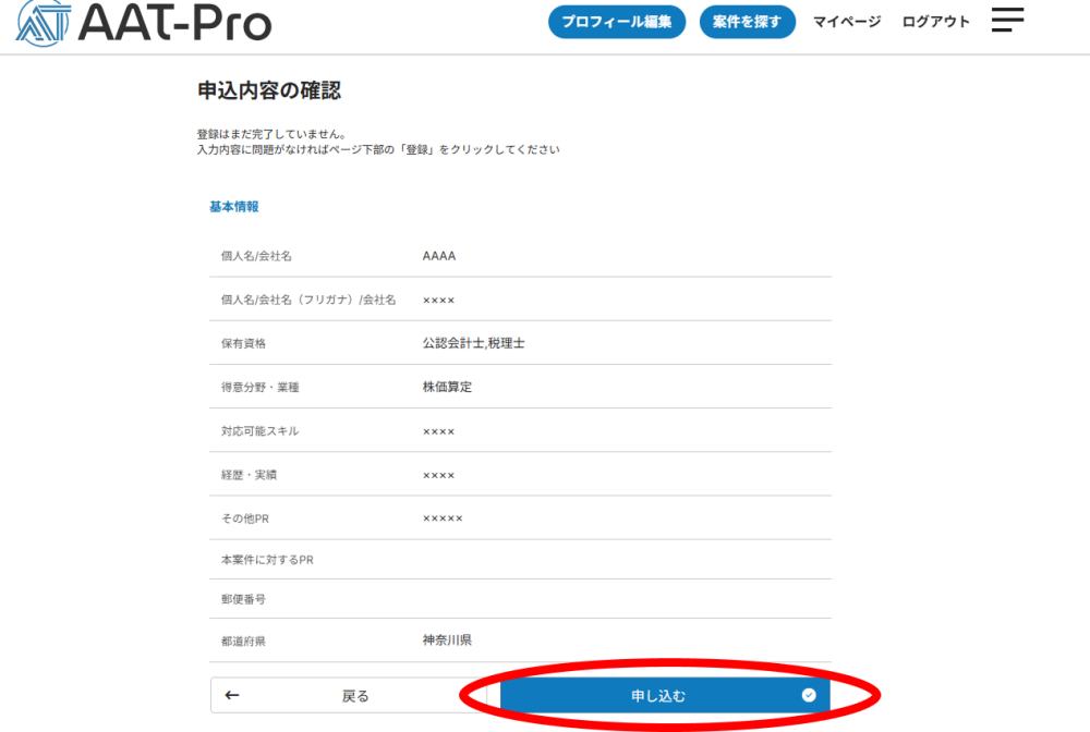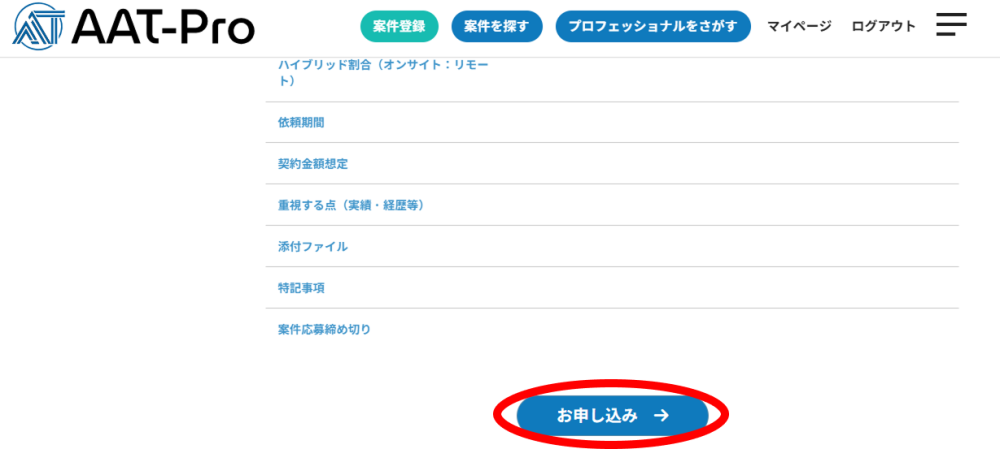 【案件応募者(プロフェッショナル側)】案件に申し込む