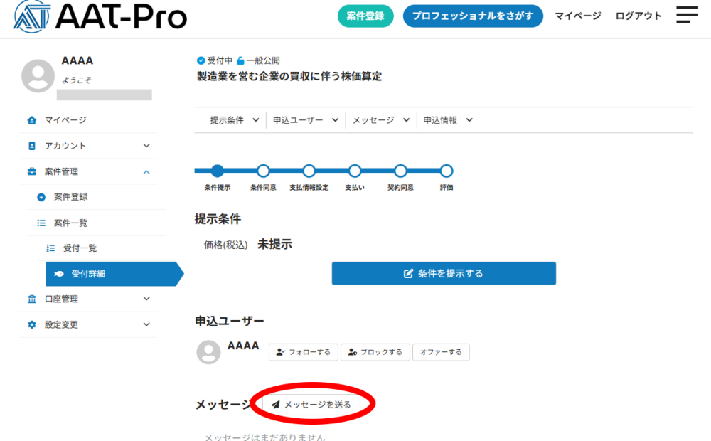 10.金額や詳細な条件等をすり合わせるためプロフェッショナルにメッセージを送る