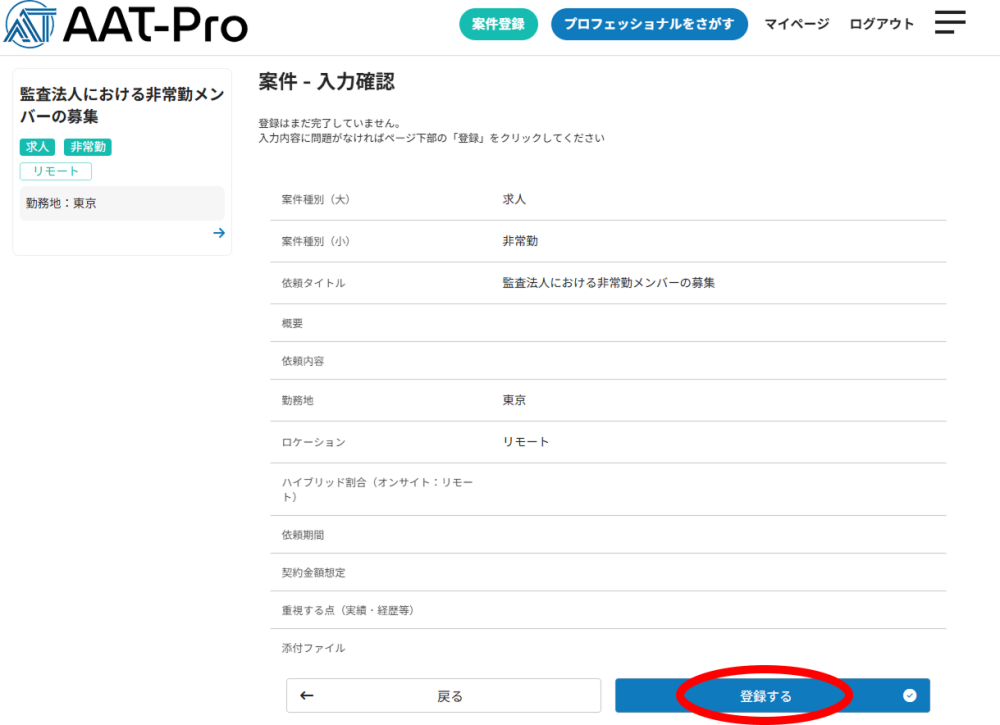 3.登録内容に誤りがないことを確認したのち「登録する」をクリック
