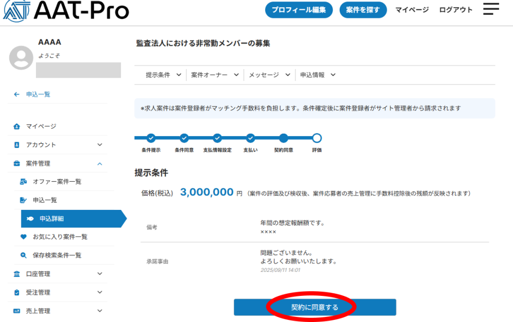 【案件応募者(プロフェッショナル側)】契約に同意する
