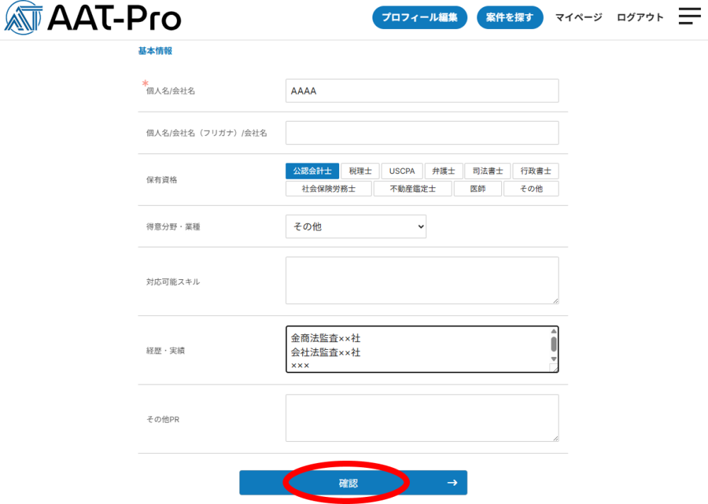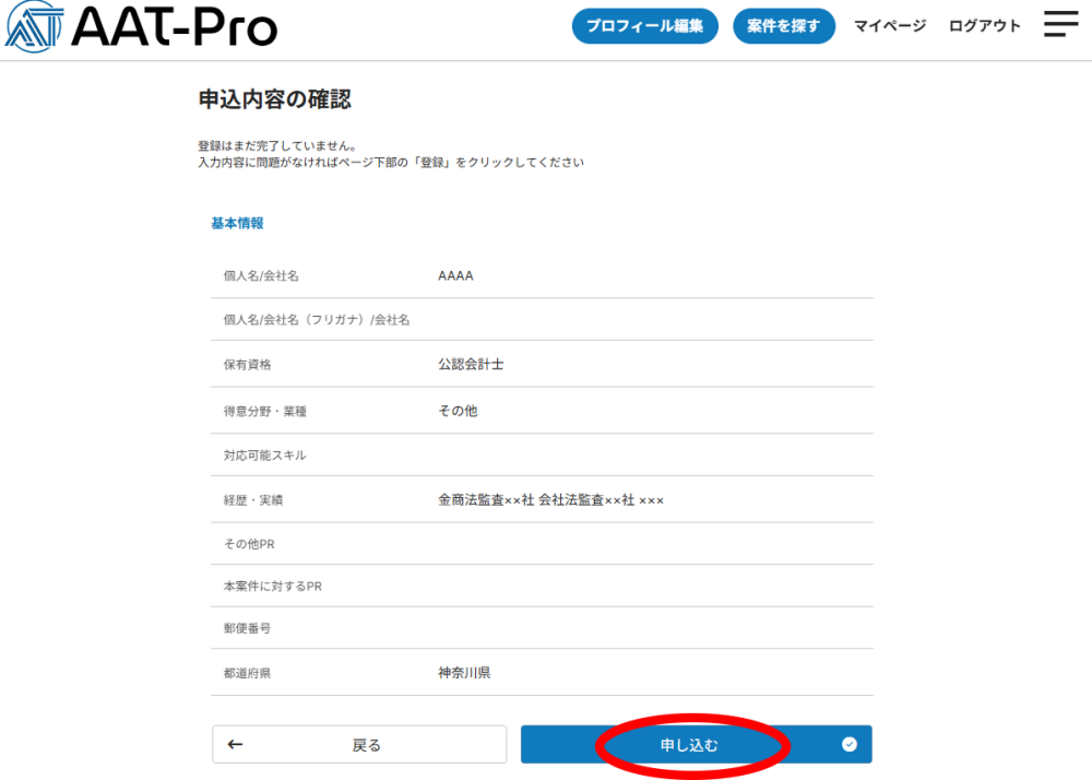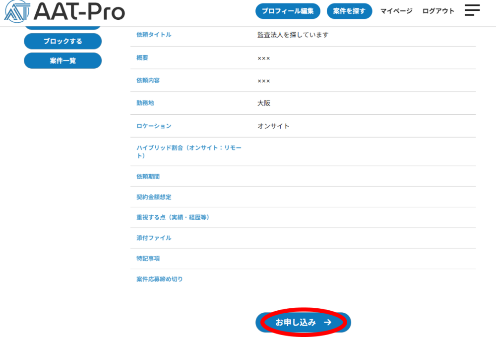 【案件応募者(プロフェッショナル側)】案件に申し込む