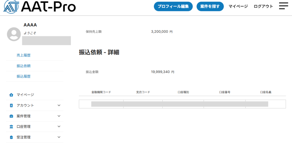 例Ⅳ:案件応募者(プロフェッショナル側)の売上入金処理