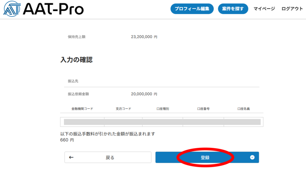3.入力内容を確認して「登録」をクリック